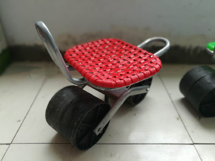 蔬菜大棚小凳子這種小凳子有兩輪,是個(gè)小車(chē)車(chē),也叫田間小凳子,有加厚管壁的加厚輪子,干活的人坐在小凳子上,可以用屁股的力量往前挪到,四五個(gè)小時(shí)的工作量,也不會(huì)有多累。