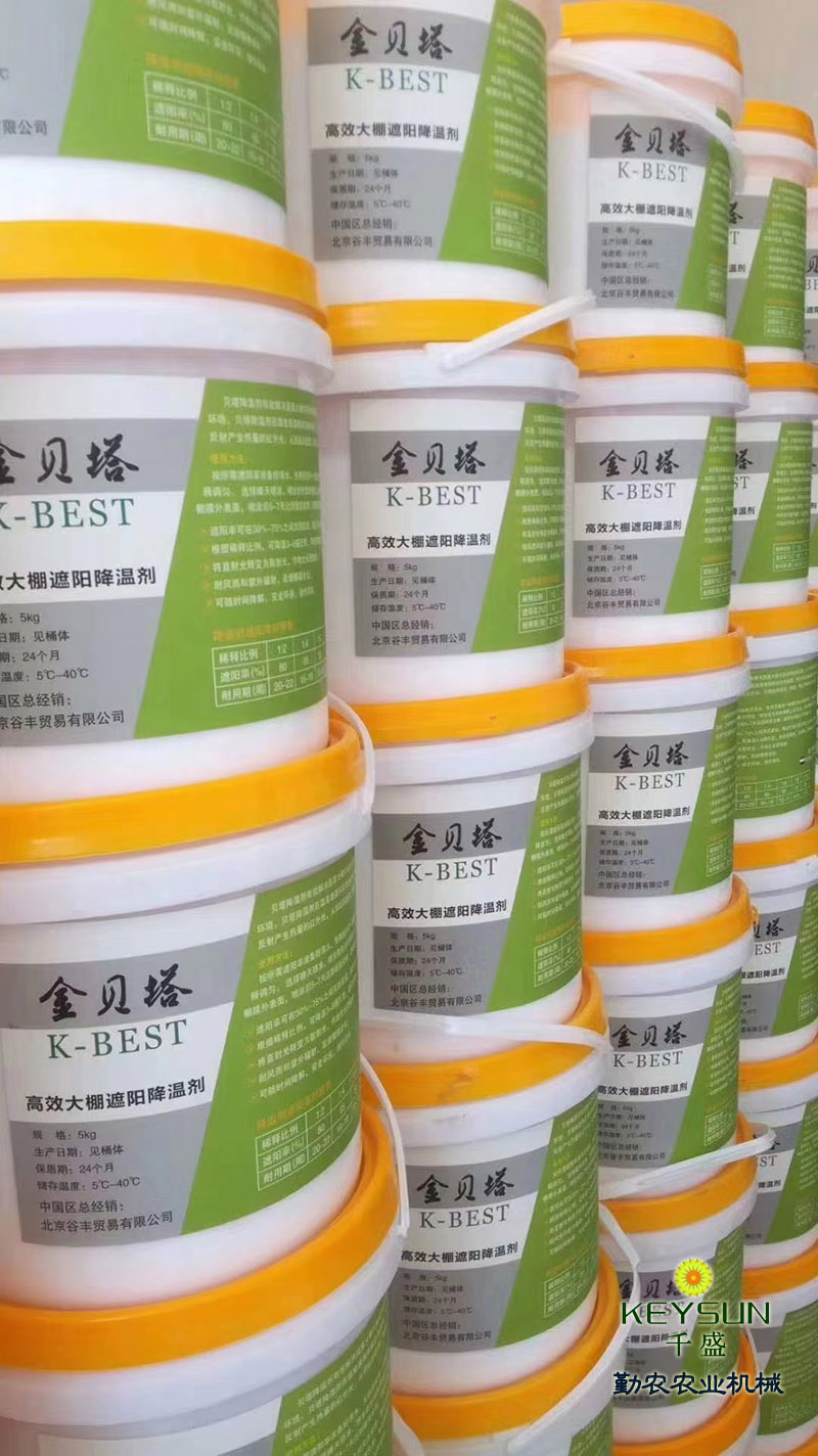 山東禹城勤農(nóng)大棚降溫劑能有效解決蔬菜大棚內(nèi)強(qiáng)光和高溫問(wèn)題,為作物提供理想的溫光生長(zhǎng)環(huán)境。降溫劑在溫室表面形成白色涂層,將太陽(yáng)直射光轉(zhuǎn)變?yōu)樯⑸涔猓⒂行Х瓷洚a(chǎn)生熱量的紅外光,從而起到遮陽(yáng)、降溫、防止棚膜老化